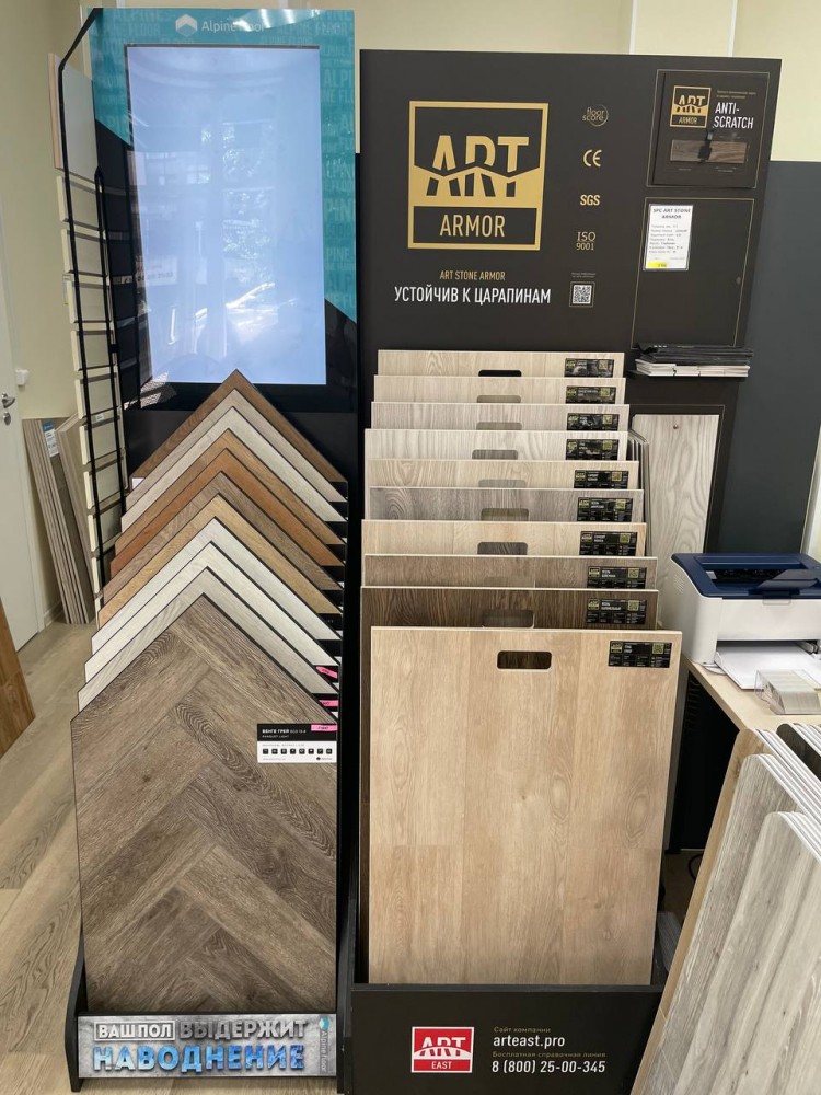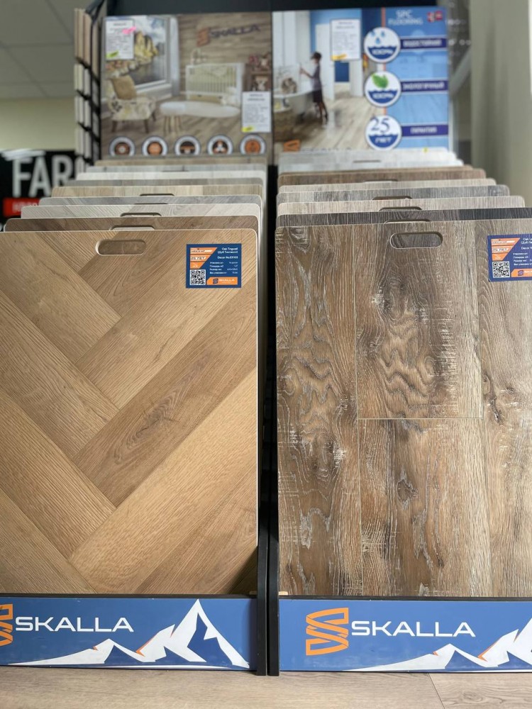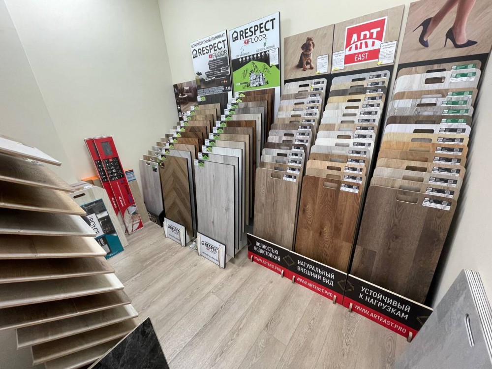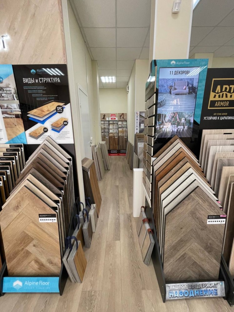 Наша сеть предлагает широкий ассортимент напольных покрытий – ПВХ плитка, Каменный SPC ламинат, кварц виниловые полы, инженерная доска и паркет.